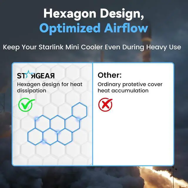 [Shockproof & Heat Dissipation]Engineered to absorb impacts and disperse collision energy, the Starlink Mini Cover guards against bumps, drops, and vibrations. Its built-in honeycomb structure enhances heat dissipation, while the breathable layer prevents overheating during extended use. Ideal for RV trips and off-road adventures, it keeps your dish safe and cool.
