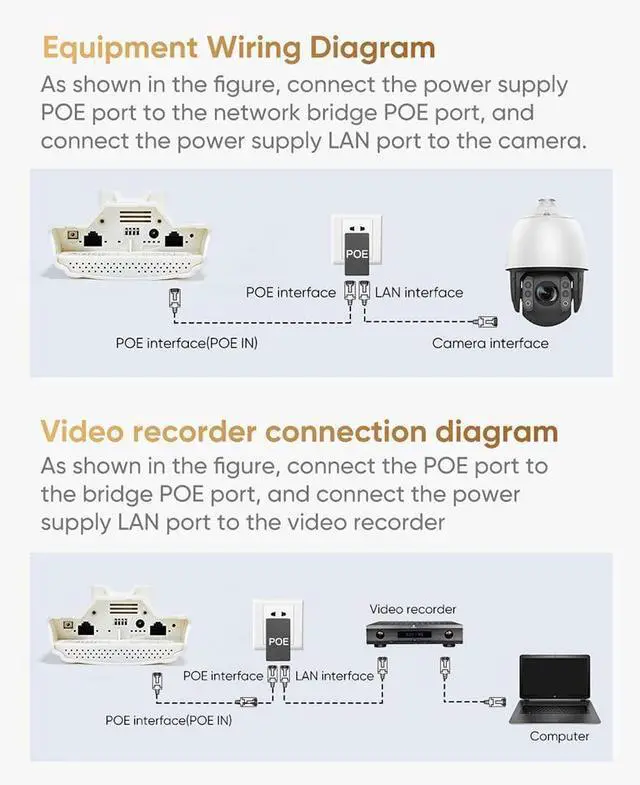 Point-to-Point Transmission Built-in 7dBi directional antenna delivers extended transmission range and wider bandwidth, supporting multiple HD cameras. Tested point-to-point pairing, barrier-free, transmission distance achieve 1500 meters directional wireless coverage. It can significantly improve the transmission and reception performance of wireless signal.