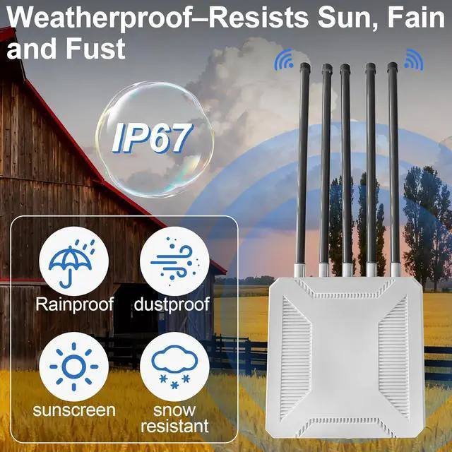 Durable and Rugged: The outdoor access point features an IP67-rated waterproof and dustproof shell and built-in lightning and electrostatic protection, specifically designed to withstand harsh outdoor weather conditions, ensuring stable operation in all environments