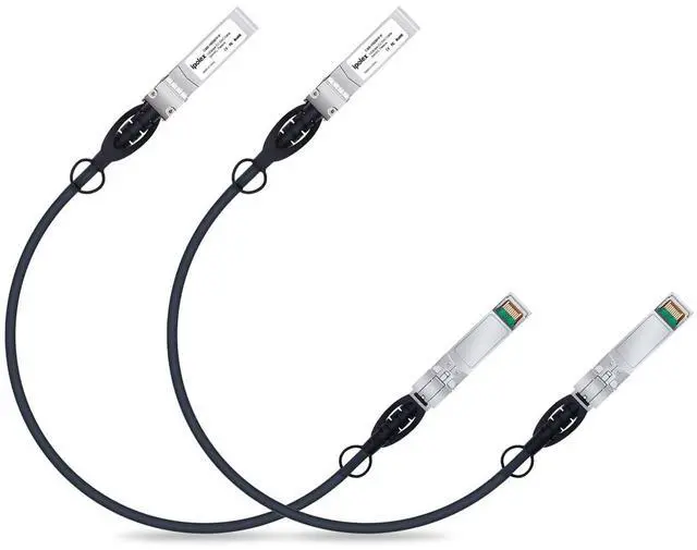 10GBase-CU, SFP+ to SFP+ Connector, Passive, 0.25 meters (0.82ft), 30AWG, Black, Pack of 2. The length of the cable includes the connectors at both ends.
