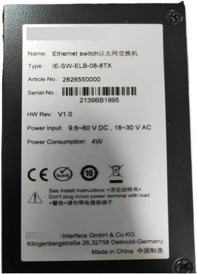 Industrial Switch, Fast Ethernet Switch IE-SW-ELB-08-8TX 2828550000