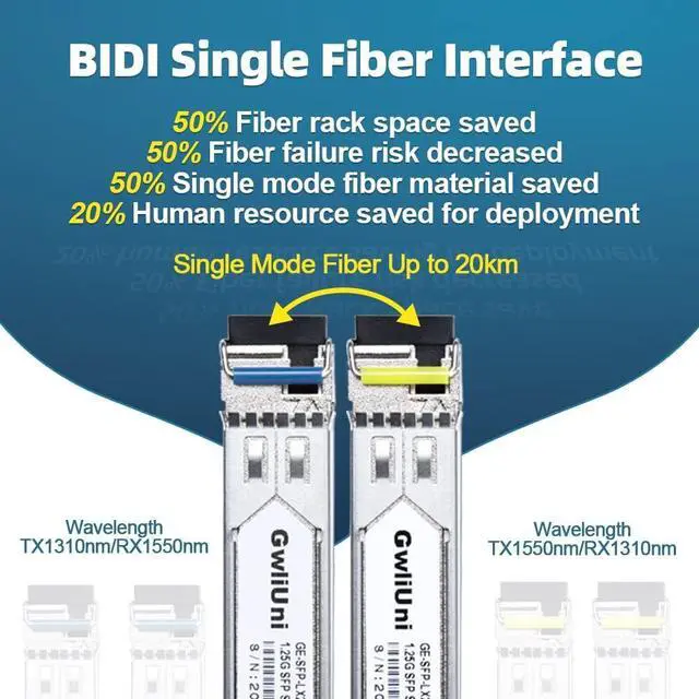 High performance single mode BIDI 1.25 Gigabit SFP transceiver, supports up to 20km fiber length connection and 0~70 operating temperature. More than 1000k+ pcs SFP are already deploy in global market