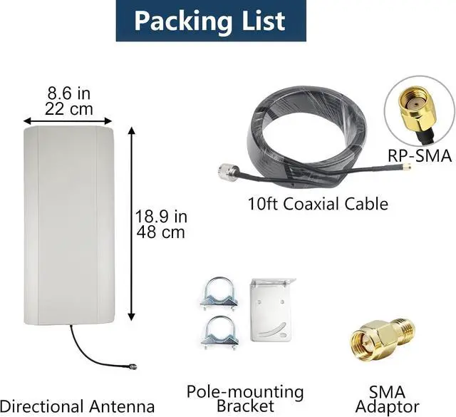 Complete Package, Ready to Use: Package Includes: 1 x Directional Antenna, 1 x Mount Kit, 1 x 3-Meter Cable, 1 x SMA Adapter. Comes with all necessary accessories for easy installation and immediate use.