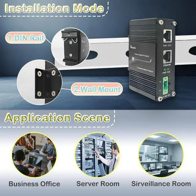 Easy Installation: Din rail and wall mounting options make installation easy. Compact design allows it to fit seamlessly into existing setups without taking up too much space