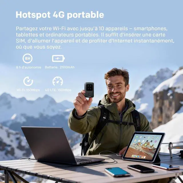 WIFI Sharing up to 10 Devices - Connects smartphones, laptops and tablets simultaneously. This unlocked 4G MiFi device is perfect for travel, RV vacation or remote work.