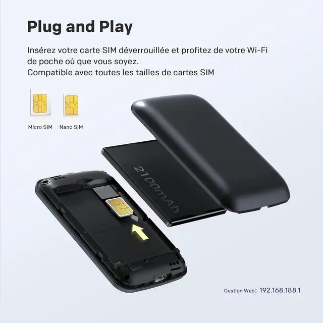 Easy management via the web no app needed. Access 192.168.188.1 to manage your mobile WiFi, set data limits, control connected devices and send/receive SMS using your SIM card.