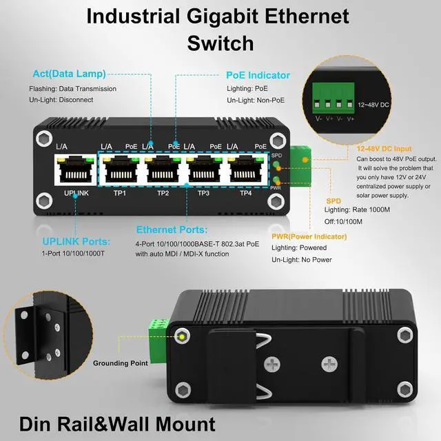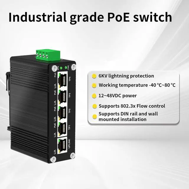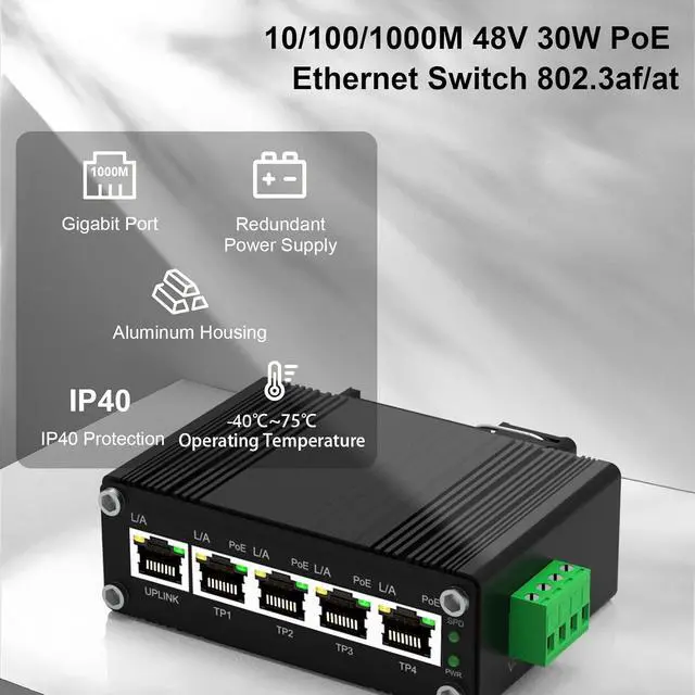 Industrial-Grade Reliability: Built with a rugged IP40-rated metal housing, designed to withstand harsh conditions. Operates reliably in extreme temperatures from -40°C to 80°C, with 8KV surge protection and high resistance to vibration, shock, and EMI for stable performance in demanding environments.