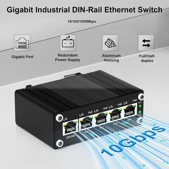 Easy Industrial Installation: Compact design (95 x 88 x 46mm) with DIN-rail mounting for space-saving installation in control cabinets, traffic cabinets, and industrial enclosures. Plug-and-play operation requires no configuration, making deployment quick and simple.