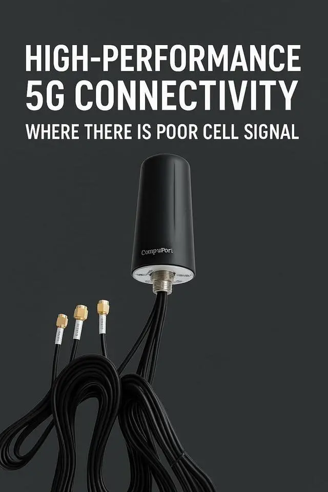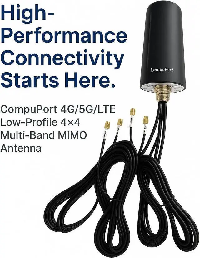 CompuPort MULTI-BAND SUPPORT: 4G/5G/LTE antenna operates across wide frequency range of 700-3800MHz with 4x4 MIMO technology for enhanced connectivity