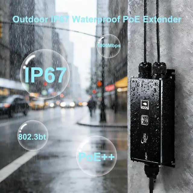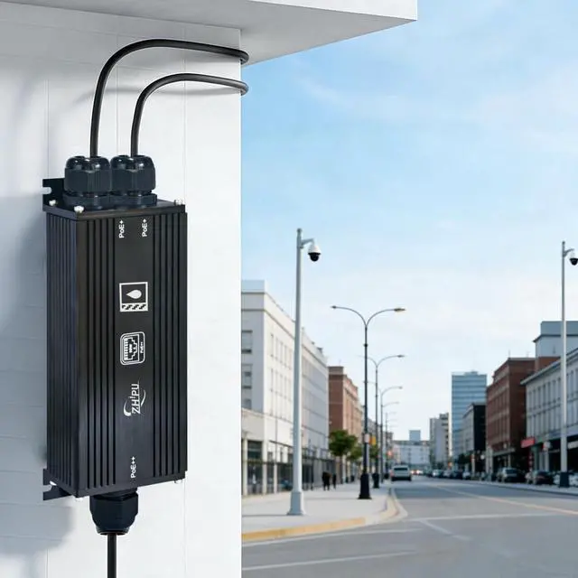 : Robust aluminum casing with IP67 rating ensures reliable operation in harsh environments, ideal for outdoor networks and surveillance systems.