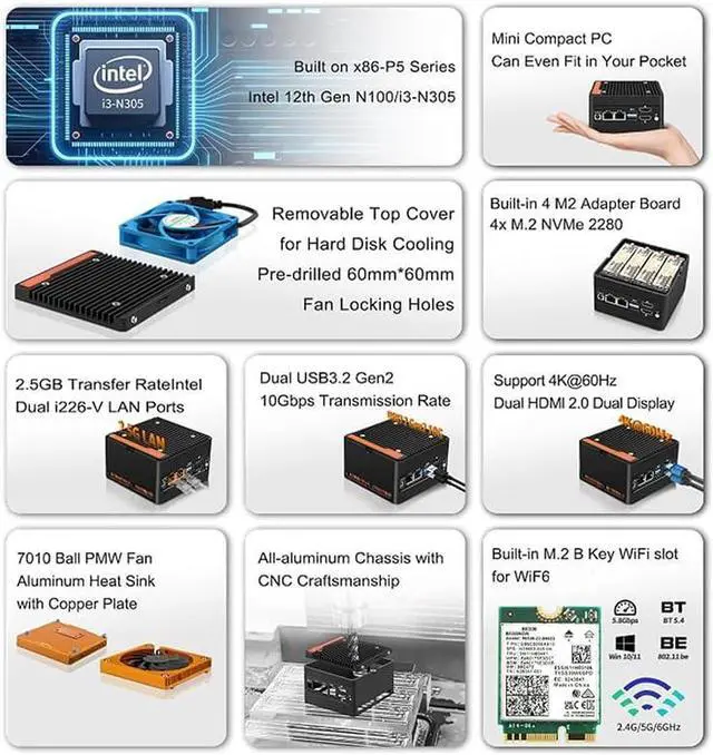 Versatile Compatibility:N305 N355 NAS ecosystem compatibility with most hardware platforms, popular systems, and software for unparalleled system compatibility,OPN sense/Ope nWrt/Unbutun/windows /ESXI/Linux