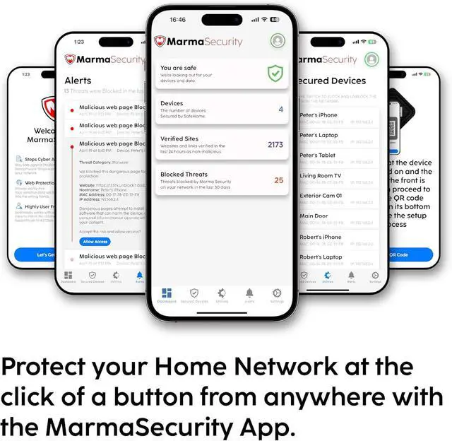 HOME FIREWALL SOLUTION: SafeHome is an advanced cybersecurity solution that protects your home network and safeguards your family and all internet connected devices in your home from cyber threats and hackers. SafeHome blocks phishing, malware, ransomware, online scams and dark web threats.