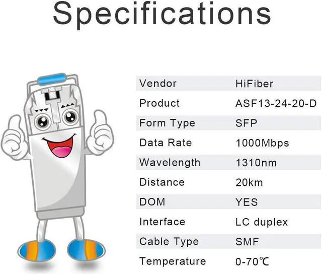 Hot-Pluggable: PLUG and PLAY, SFP Module with Advanced DDM Function to monitor real-time parameter and state on fiber links. SFP MSA Compliant, IEEE 802.3z- compliant.