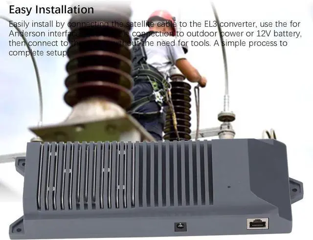 Easy Installation: Easily install by connecting the satellite cable to the EL3 converter, use the for Anderson interface for DC cable connection to outdoor power or 12V battery, then connect to the router without the need for tools. A simple process to complete setup.