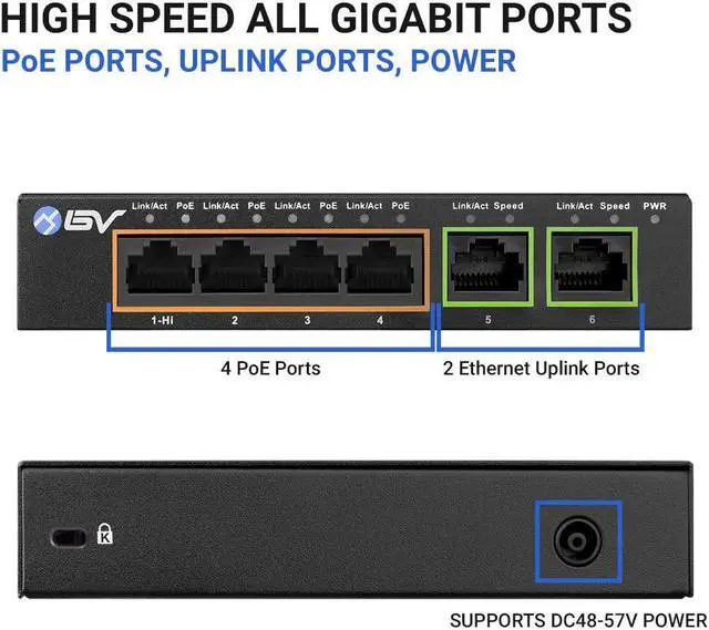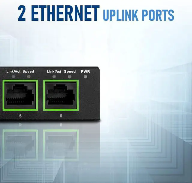4 Gigabit PoE+ Ports and 2 Ethernet Uplink Ports at 10/100/1000 Mbps each, making network setups easier and more convenient.