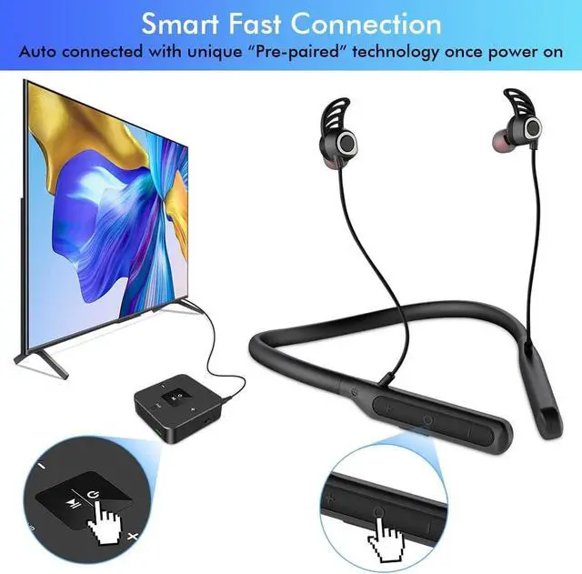 No Lip-Sync DelayGolvery BTWH-038 wireless headphones set supports low latency audio codec, it can reduce the audio delay to unnoticeable 40ms, brings you immersive TV watching experience with no lip sync problem. NOTE: If you use the BTI-038 transmitter to pair with other Bluetooth headphones, there may be some audio delay since most of other brands headphones cannot support low latency codec