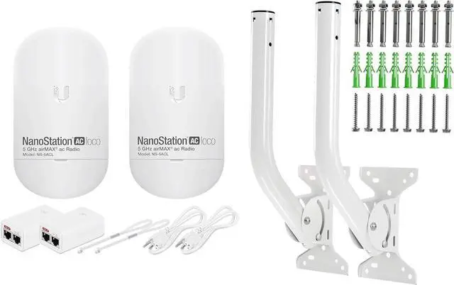 Bundle Includes: 2 Paired NanoStation Loco 5AC (Ubiquiti), 2 POE Injectors with Power Cords, 2 Straps, Two complete J-Poles Kit, Installation Guide