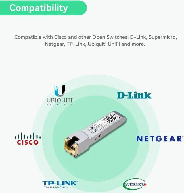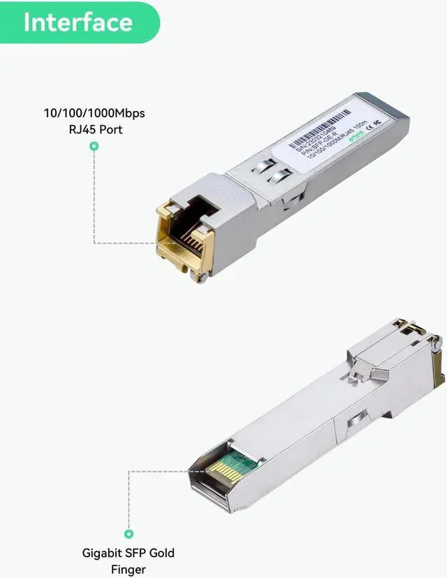 SFP to RJ45 TRANSCEIVER - Convert 1000Base-T SFP to RJ45 Copper Gigabit Ethernet, 1.25G Speed, RJ-45 Interface, reach up to 328ft (100m) transmission over Cat5e/ Cat6/ Cat7 cable.