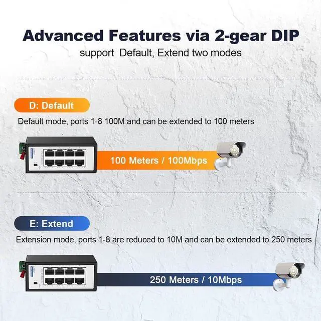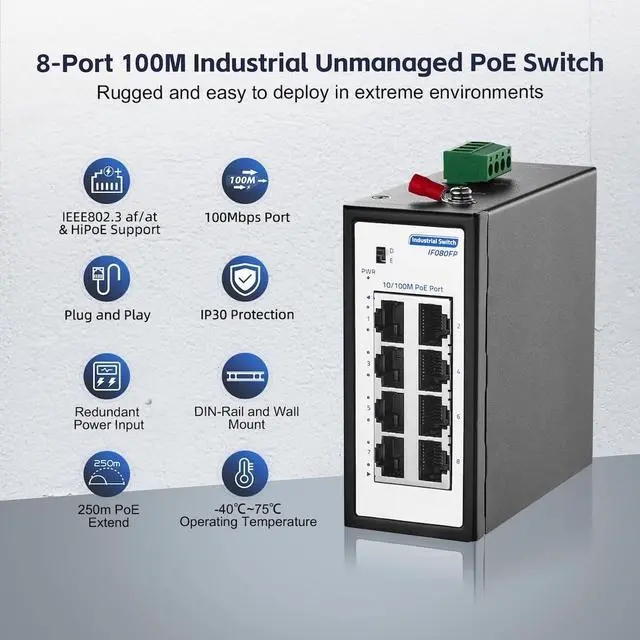 Extreme Temperature Switch: IP30 protection grade, working temperature -40~75°C(-40~185°F), super robustness, anti-lightning, anti-static and anti-overload protection, adapt to various harsh environments.