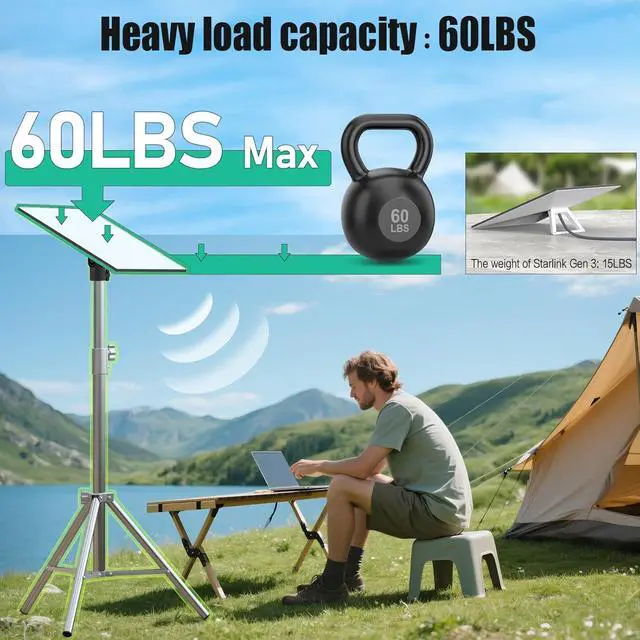 [Starlink Gen 3 Tripod]Made from sturdy stainless steel material, the Starlink tripod provides reliable strength and support. The tripod design can resist toppling in high winds and challenging terrains, making it safe for both indoor and outdoor use. Additionally, the tripod comes with non-slip silicone pads, further enhancing stability and load-bearing capacity.