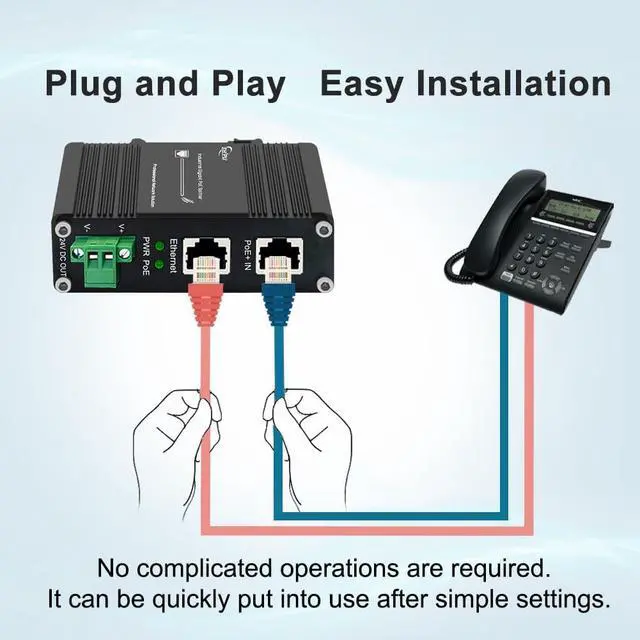 Din-Rail & Wall Mount- Industrial-grade aluminum alloy PoE injector supports 10/100/1000 Base-T Gigabit network with dual installation options. High bandwidth enables 4K/8K camera transmission, ideal for wireless APs, CCTV security, IP phones, etc.