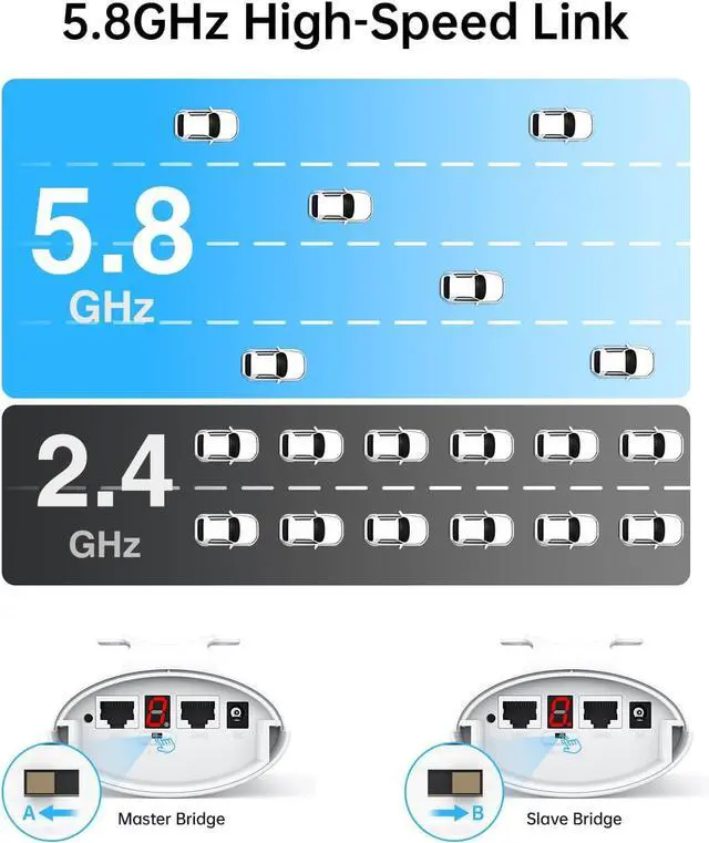 PLUG & PLAY: The pre-configured wireless bridge point to point outdoor is almost plug-and-play functionalitysimply plug devices out of the box to get started. For reconfiguration, easily pair the master and slave bridges by switching the DIP switches and pressing the A-B button, ensuring hassle-free installation.