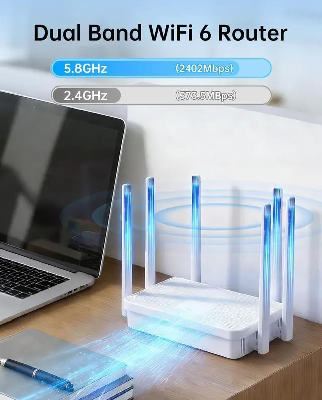 DUAL BAND AX3000 WiFi ROUTER: Equipped with WiFi 6 and a 6-antenna design, this gigabit router enhances signal coverage and data efficiency; The high-speed router supports 2.4G and 5.8G dual-band for stable, smooth connections anywhere in your home.