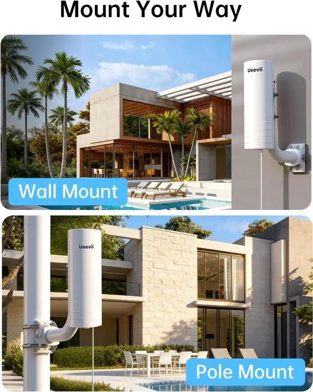 2 INSTALLATION OPTIONS of ADJUSTABLE MOUNTING BRACKETS: This wireless bridge bracket mount can be installed on a pole or wall-mounted, and you can choose to install it according to your needs. Adjustable angles facilitate precise alignment and rapid deployment, enhancing the convenience and flexibility of network usage.