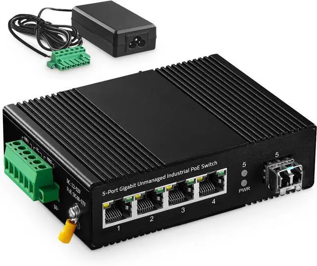 5 Gigabit PortsThis din rail switch include 4 gigabit ethernet ports, 1 gigabit SFP port with 1310nm 20km LC transceiver, support longer distances over fiber.