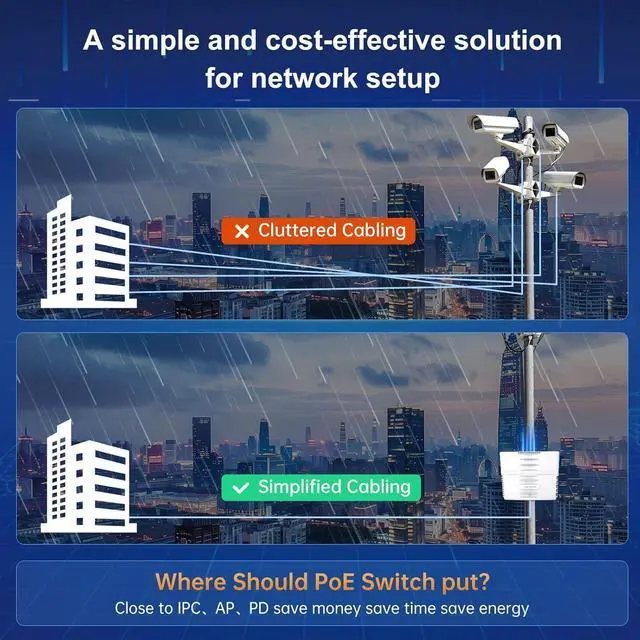 Stable and Security: 6KV lightning protection, 8KV Electro-Static discharge Protection, wide temperature range -30°C~60°C , stable operation, easy to maintain network status.Unmanaged plug-and-play ethernet switch, setup with no software to install or configuration needed. If you have any questions, please contact our official support and we will provide the best after-sales service.