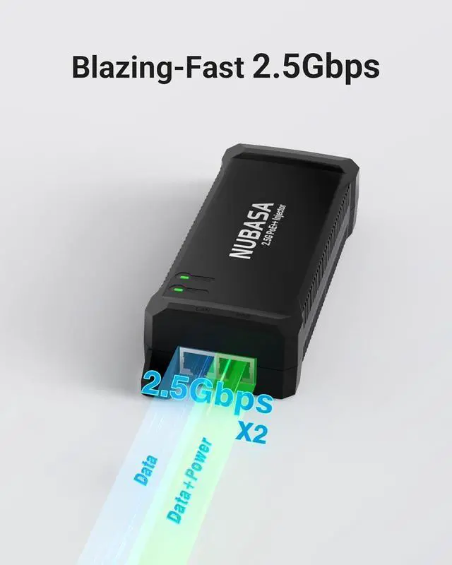 Easy Upgrade for Non-PoE Switches No Rewiring NeededThe PoE adapter connects seamlessly to any non-PoE 2.5GbE switch. Simply plug your switch into the Data In port and your powered device into the PoE++ Out portupgrade existing infrastructure without replacing cables or hardware.