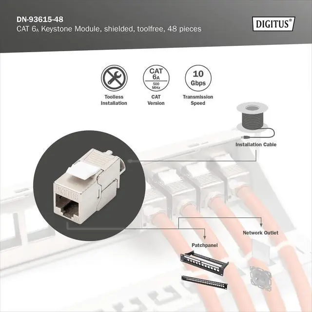 In connection with a modular patch panel and modular network junction boxes, the cat. 6A keystone modules are perfect for modern, structured building cabling
