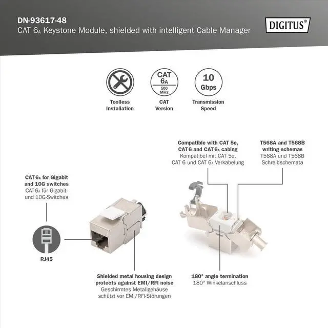 Digitus Keystone Module cat. 6A Shielded - 48 Pieces - RJ45 - Multi-Design - 500 MHz 10G Base-T - Tool Free