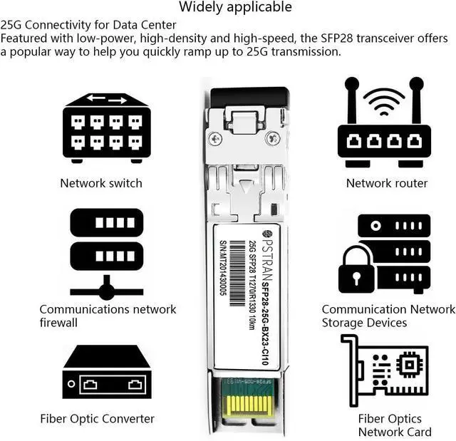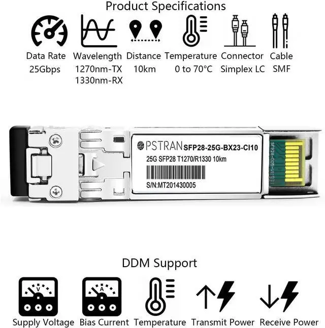 Double Your Bandwith by Using Only One Fiber for Transmitting and Receiving. Hot Pluggable SFP28 MSA and RoHS Compliant to Maximize Uptime and Simplify Maintenance