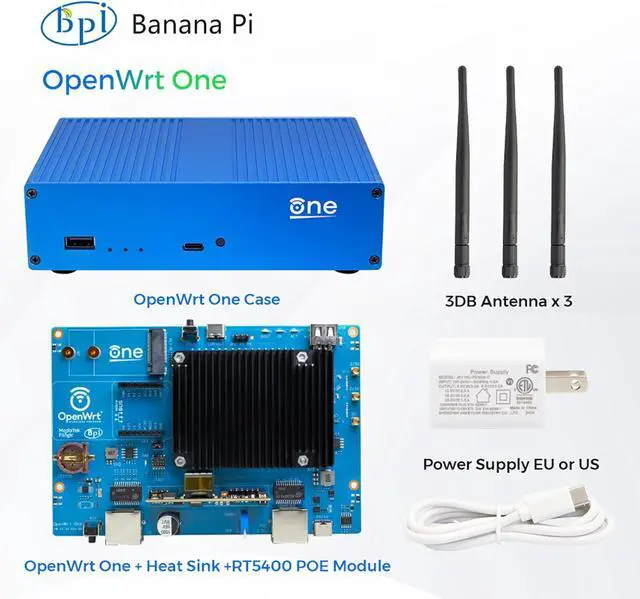 OpenWrt One/AP-24.XY router board is based on the MediaTek MT7981B (Filogic 820) SoC and MediaTek MT7976C dual-band WiFi 6 chipset. It is the first official development board from the OpenWrt open-source community, co-designed with Banana Pi.