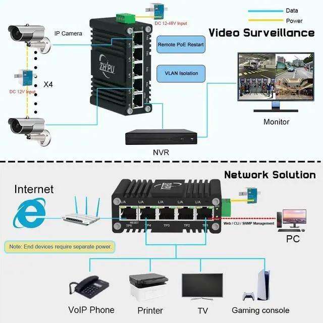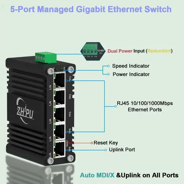 Smart & Easy Management : 5 x 10/100/1000Base-TX RJ45 ports with Auto-MDI/MDIX support, delivering plug-and-play flexibility for seamless integration in home, office or industrial networks.