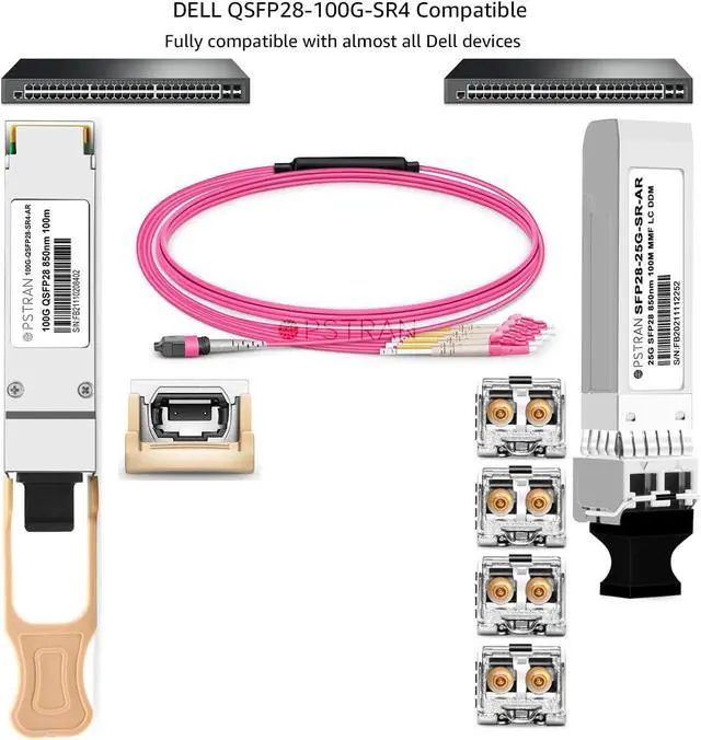 • Support 100G to 4x25G Breakout Application. Hot Pluggable QSFP28 MSA and RoHS-6 Compliant to Maximize Uptime and Simplify Maintenance