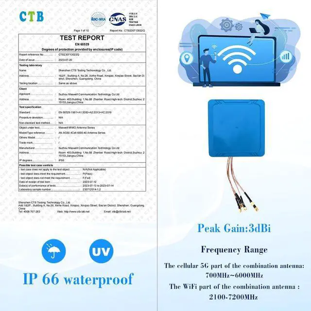 Indoor and outdoor installation: IP66 waterproof and weatherproof design from -40°C to +80°C ensures long life of the antenna. Suitable for outdoor use, such as vending machines, instrument boxes, tool sheds, etc. Or other scenarios that require a thin, high-performance external antenna.