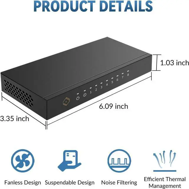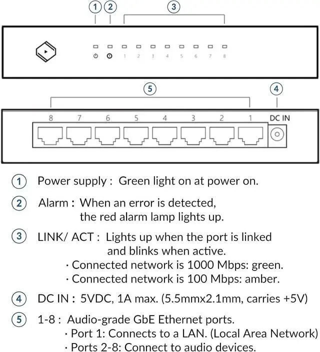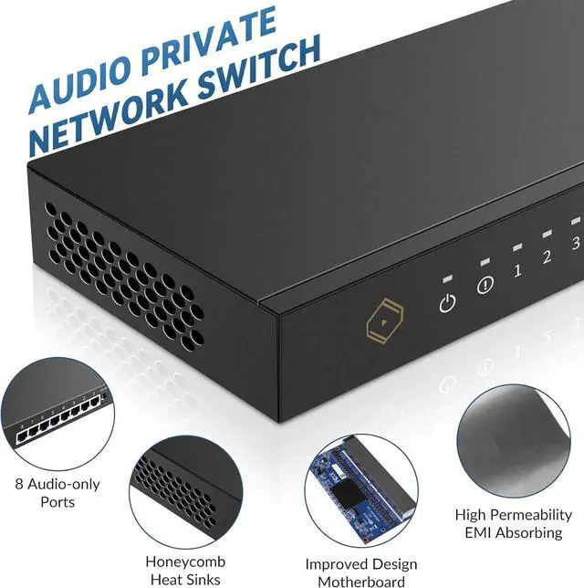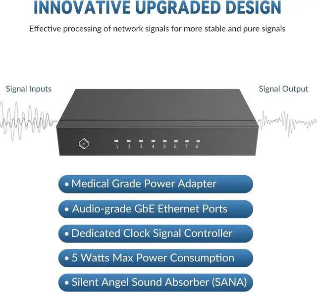 Audio-Grade Gigabit Ports: Offers 8 high-speed Ethernet ports to seamlessly connect multiple audio devices, including DACs, streamers, music servers, and more, ensuring smooth network performance.