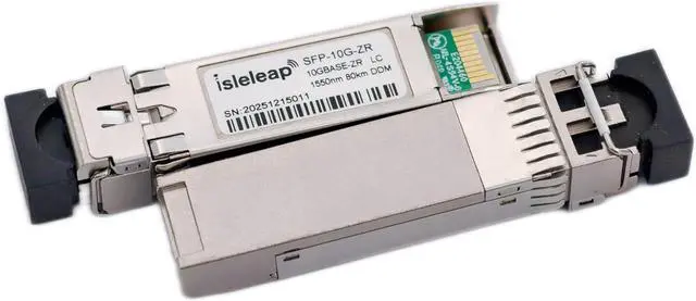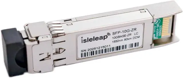 The Isleleap 10G SFP+ ZR Transceiver delivers high-performance fiber optic connectivity for enterprise networks and data centers. This 10GBase-ZR optical module features duplex LC connectors and single-mode fiber compatibility, enabling reliable long-distance data transmission up to 80 kilometers at 1550nm wavelength. Designed for network switch connectivity, this transceiver is compatible with major networking equipment from Cisco, Arista, Juniper, and other manufacturers that support the SFP-10G-ZR-S standard. The module includes DDM (Digital Diagnostic Monitoring) functionality, allowing network administrators to monitor real-time performance parameters such as optical power levels and temperature. Each package includes one SFP28 transceiver module measuring approximately 7.1 x 1.6 x 7.9 inches. Built for demanding networking applications, this single-band frequency transceiver comes with a 2-year warranty for added peace of mind. Whether you're upgrading existing infrastructure or building new network connections, this optical module provides the extended reach needed for campus networks, metropolitan area networks, and point-to-point connections.