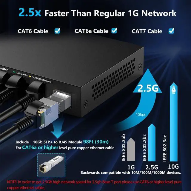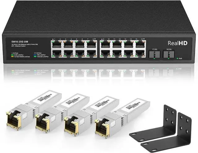 [ 2.5G Super-Fast ] This 2.5 gigabit switch features 16 x 2.5G RJ45 ports and 2 x 10G SFP+ port, providing higher-speed connectivity for your devices and allowing you to easily upgrade your network to support the latest 2.5G ethernet standard.