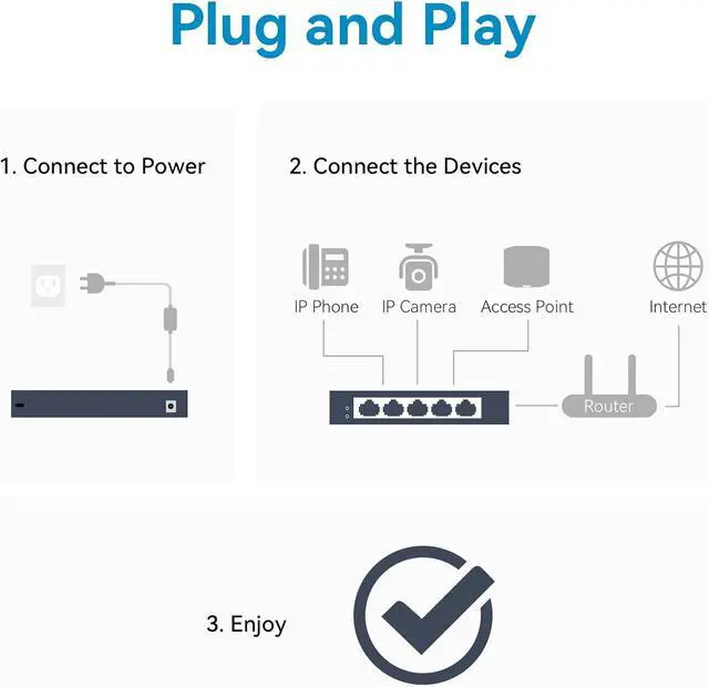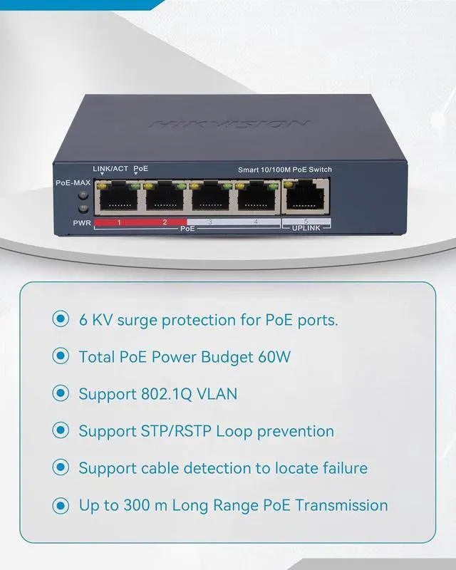 Protect your connected equipment with built-in 6KV surge protection on each PoE port, shielding against voltage spikes. Combined with a quiet, fanless design, this switch offers durable and energy-efficient operation for long-term reliability