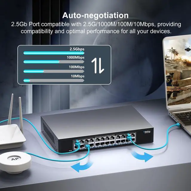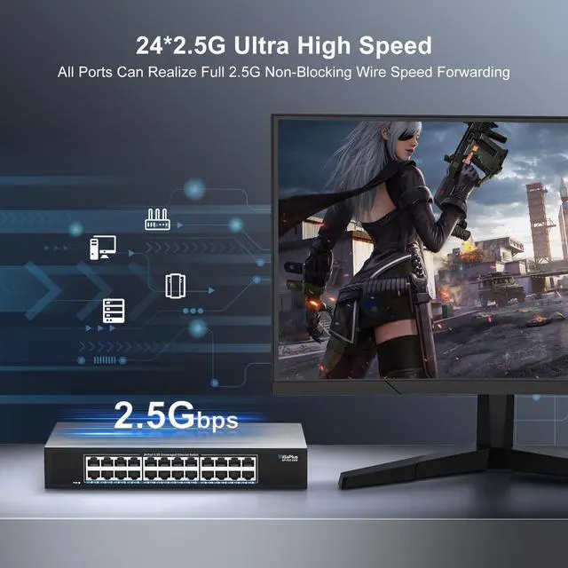 Plug and Play: Unmanaged Plug and Play with automatic MDI/MDIX and non-blocking data forwarding support, and 10/100/1000M/2.5G adaptive support on ports 1-24 for speeds up to 2.5 times faster than existing 1G networks. Easily set up without any configuration or software to provide optimal performance for all your devices.