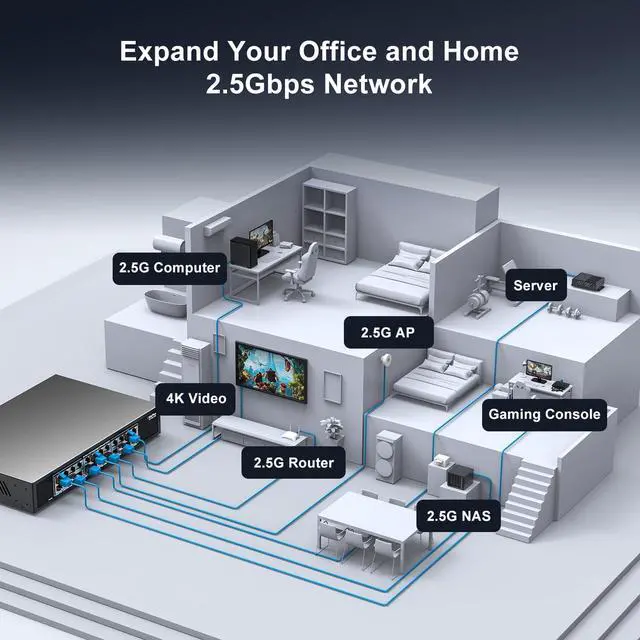 Wide Range of Applications: The Ethernet switch is highly compatible with 2.5G NAS, 4K video, gaming PCs, 2.5G servers, 2.5G WiFi6 APs, and 2.5G PCIe adapters, which can meet the needs of various network environments and is suitable for shopping malls, schools, hospitals, hotels, and small and medium-sized enterprises.