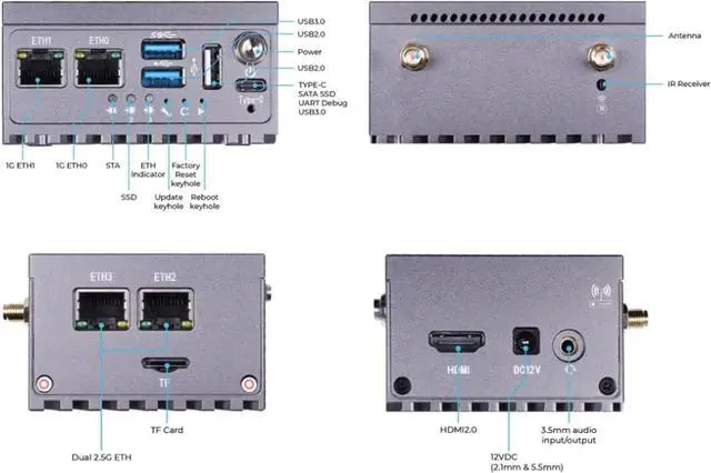 LinkStar-H68K-1432 Router with Wi-Fi6, 4GB RAM 32GB eMMc, Dual-2.5G & dual-1G Ethernet, 4K output, Android 11, Ubuntu OpenWRT