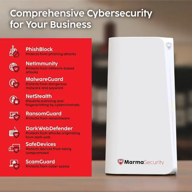 BUSINESS CYBERSECURITY SOLUTION: SafeBiz is an advanced cybersecurity solution that protects your work network and safeguards your Business data and all internet connected devices in your business from cyber threats and hackers. SafeHome blocks phishing, malware, ransomware, online scams and dark web threats.