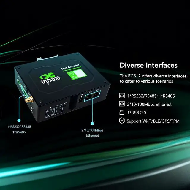 Rich Expandable I/O Interfaces: Includes 1x USB 2.0, 1x MicroSD slot , and multiple serial ports (1x RS-232/485 + 1x RS-485) , with optional expansion for CAN FD, Analog Input (4-20mA), and Digital I/O, perfect for connecting diverse industrial sensors and machinery.