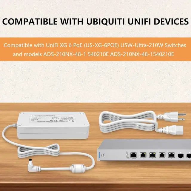 Compatibility : This 54V 3.9A 210W power supply serves as a replacement power adapter for Ubiquiti UniFi devices.It is designed to work with UniFi XG 6 PoE (US-XG-6POE),USW-Ultra-210W Switches,and models including ADS-210NX-48-1,540210E,and ADS-210NX-48-1540210E.