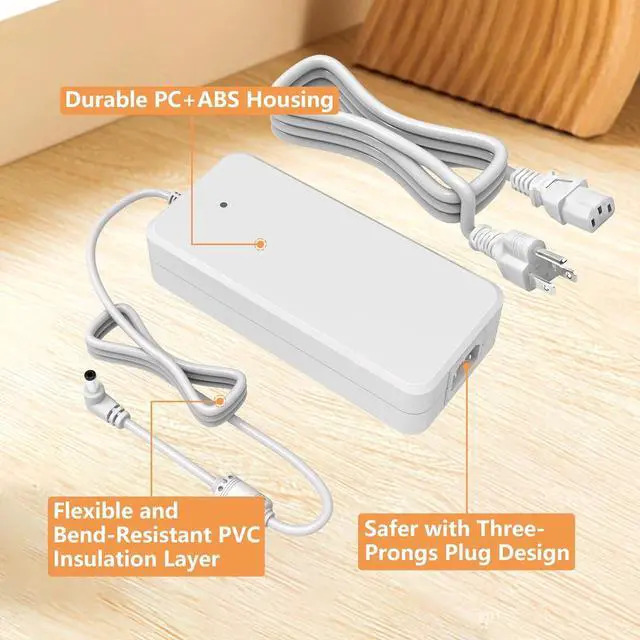 Safety & Durability : This power adapter includes protection features that address overvoltage, overcurrent,and short-circuit situations.The design incorporates measures for water resistance and enhanced heat dispersion,which can contribute to maintaining performance and supporting the product's lifespan during use.