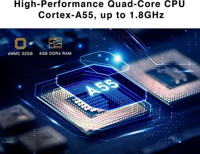 QUAD-CORE CORTEX-A55: The integration of the latest CPU, clocked at speeds of up to 1.8GHz, significantly enhances the performance of a dashboard controller. It enables rapid data analysis, efficient multitasking, and responsive user interactions. This heightened processing speed ensures the effective management of complex enterprise networks, including real-time monitoring and the handling of large data volumes.